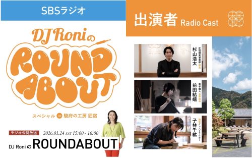 1月24日(土)「駿府の工房 匠宿」から、SBSラジオ『DJ RoniのROUNDABOUT』出張公開生放送を開催!