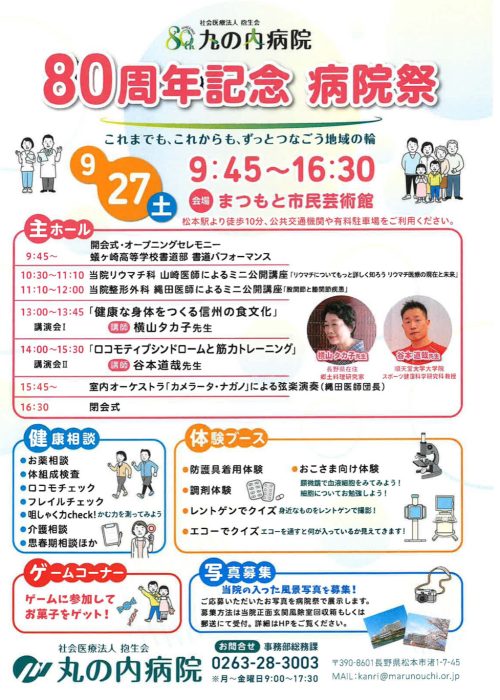 松本市の社会医療法人 抱生会 丸の内病院「80周年記念 病院祭」午後の部の司会を DJ Roniがつとめます。